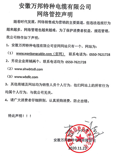 鄭重聲明:安徽萬邦特種電纜有限公司官方網站為:www_wanbangcable_com.guojiuqingyin.com.cn,除此之外無任何子網站或合作網站,其余均為假冒偽劣。電話:0550-7621728 13485756353 地 址:安徽省天長市滁州高新技術產業開發區經四路29號